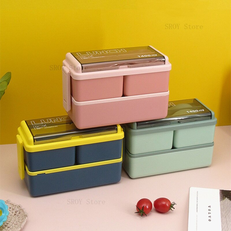 Caixa de almoço portátil de dupla camada.
